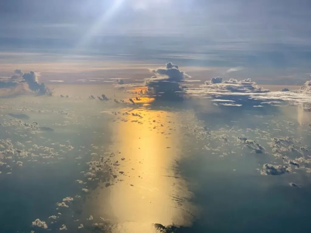 「無量劫中修行海,供養十方諸佛海,化度一切眾生海,今成妙覺遍照尊。毛孔之中出化雲,光明普照於十方,應受化者咸開覺,令趣菩提淨無礙。佛昔往來諸趣中,教化成熟諸群生,神通自在無邊量,一念皆令得解脫。摩尼妙寶菩提樹,種種莊嚴悉殊特,佛於其下成正覺,放大光明普威耀。大音震吼遍十方,普為弘宣寂滅法,隨諸眾生心所樂,種種方便令開曉。往修諸度皆圓滿,等於千剎微塵數,一切諸力悉已成,汝等應往同瞻禮。十方佛子等剎塵,悉共歡喜而來集,已雨諸雲為供養,今在佛前專覲仰。如來一音無有量,能演契經深大海,普雨妙法應群心,彼兩足尊宜往見。三世諸佛所有願,菩提樹下皆宣說,一剎那中悉現前,汝可速詣如來所。毗盧遮那大智海,面門舒光無不見,今待眾集將演音,汝可往觀聞所說。」